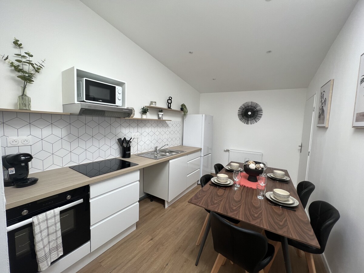 "Kom och upptäck vår nyrenoverade 64 m2 T3-lägenhet i centrum av Valenciennes - 1: a våningen i en säker bostad - Ljusa vardagsrum - Tysta sovrum på gården med sängkläder på 160x200 cm och 140x190 cm (lakan tillhandahålls) - Fullt utrustat kök: ugn, kylskåp, mikrovågsugn, tvättmaskin, Dolce Gusto kaffebryggare - Italiensk dusch, handduksvärmare (handdukar tillhandahålls) - Höghastighetsinternet och fiberoptisk TV - Möjlighet på begäran: lekplats för barn, spjälsäng, flaskvärmare"