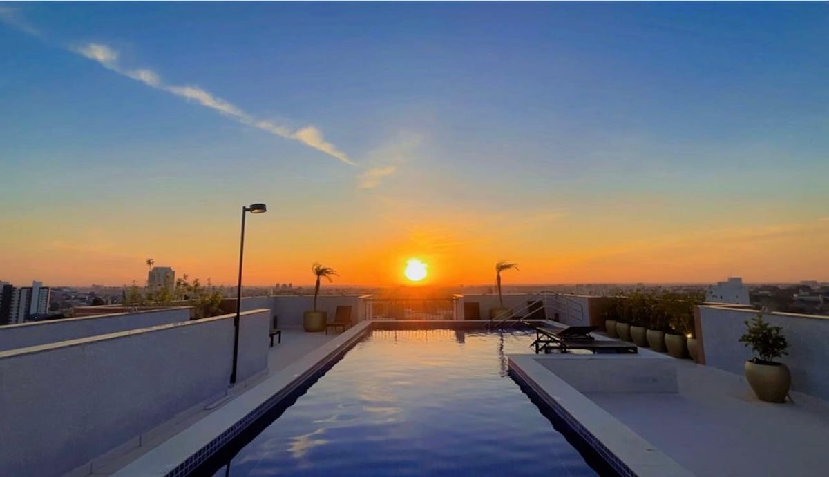 51m² modern och lyxig studio, belägen i en bostadsrätt på 880 Duque de Caxias Street, nära Centro och Cambui. Nära barer, restauranger, mataffärer och kaféer. Alla utrustade med säng och badlakan, fullt utrustat kök, dubbelsäng med extra säng, garderob med spegel, varmvatten, Nespresso-cafeteria, 2 luftkonditionering och 50"TV med Netflix och appar. Jacuzzi, pool, bastu och gym är en del av byggnadens gemensamma utrymme och kan användas av gäster.