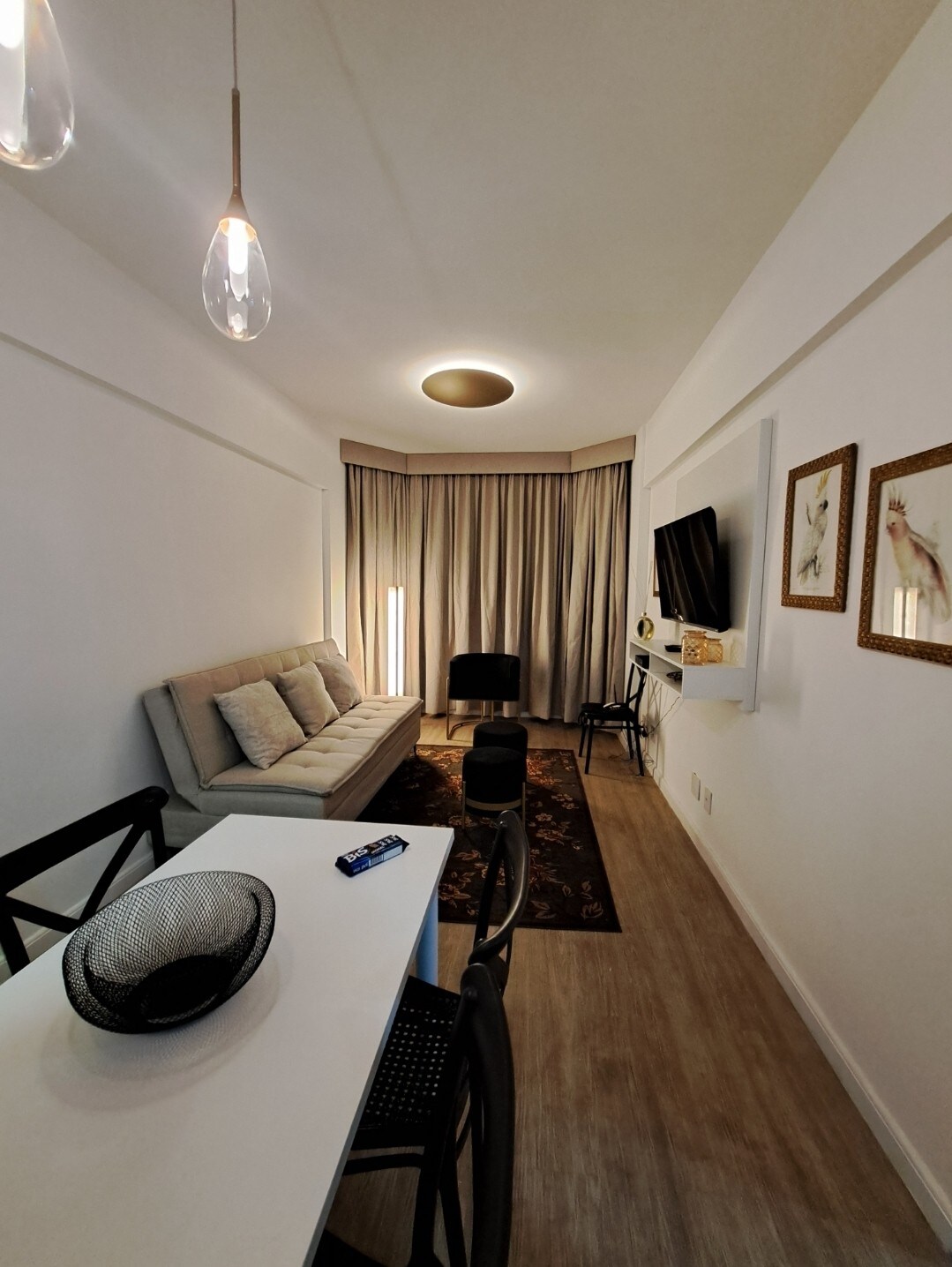 Stora lägenheter med 44 m2, utrustade med amerikanskt kök, vardagsrum (perfekt för att arbeta som hemmakontor), garderob, fulla sviter, kabel-TV, wifi, luftkonditionering, pool, squashbana, spelrum, bastu och gym. Förvaltningstjänst dagligen med trousseau-utbyten efter behov och bekvämligheter tillgängliga. Parkering med beten (R$ 25,00 per dag) och tvätt till ditt förfogande för din största komfort. Perfekt för din affärs- eller fritidsresa