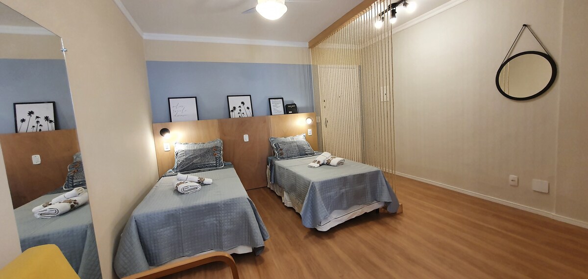 LYX OCH KOMFORT! Studio belägen på en bostadsstrå i centrala Campinas, lugn utan att ge upp allt i närheten! Vår studio är gjord för 2 personer och har en 65'' TV i vardagsrummet och en 43'' TV i sovrummet! Fullt utrustat kök: induktionsspis, mixer, vattenkokare, elektrisk kastrull, smörgåsgrill, brödrost, automatisk kaffebryggare. Superbekväm säng och vi erbjuder komplett sängkläder och handdukar.