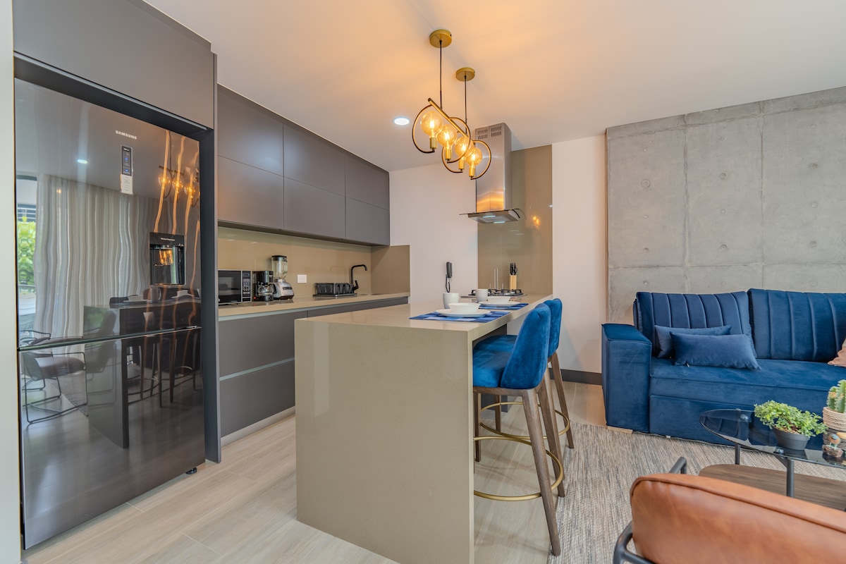 Njut av en lyxig studio i det bästa grannskapet i Cali. Fullt utrustat med fullt utrustat kök, höghastighets WiFi, SmartTV, luftkonditionering och balkong med sittgrupp. Byggnaden erbjuder en oändlig pool, gym, bastu, ångbastu och teppanyaki-grill. Centralt läge, nära stadens främsta attraktioner. Din idealiska plats att vila och njuta av Cali!