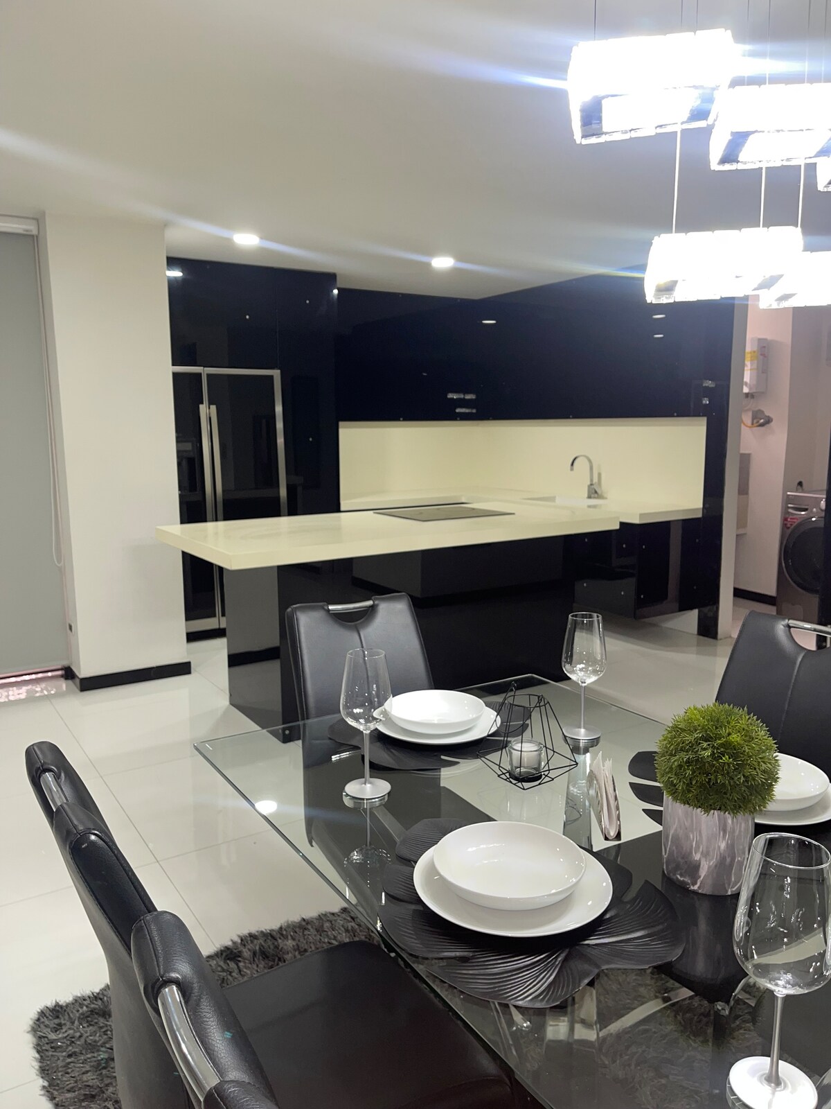 Denna elegant inredda lägenhet med 2 sovrum i norra Cali har luftkonditionering, varmt vatten, ett fullt utrustat kök, en pool och en spinningcykel i lägenheten. Beläget i en sluten och bevakad enhet, nära köpcentrum, kliniker och huvudvägar. Perfekt för chefer, familjer eller utlänningar. Från 3 nätter till 12 månader.