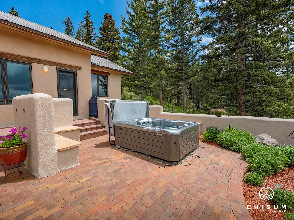 Låt skönheten och lugnet i naturen svepa iväg dig när du bosätter dig i vårt genomtänkta gästhus med fantastisk utsikt. Det ligger vid Rio Pueblos strand och har utsikt över en betesmark med höga träd. Du hittar allt du behöver i denna välutrustade, centralt belägna tillflyktsort. Titta på soluppgången med en varm kopp kaffe från de rymliga altanerna och bege dig sedan ut för att utforska, åka skidor eller släde. Den glittrande bubbelpoolen och den lyxiga komforten i boendet kommer att välkomna dig tillbaka.