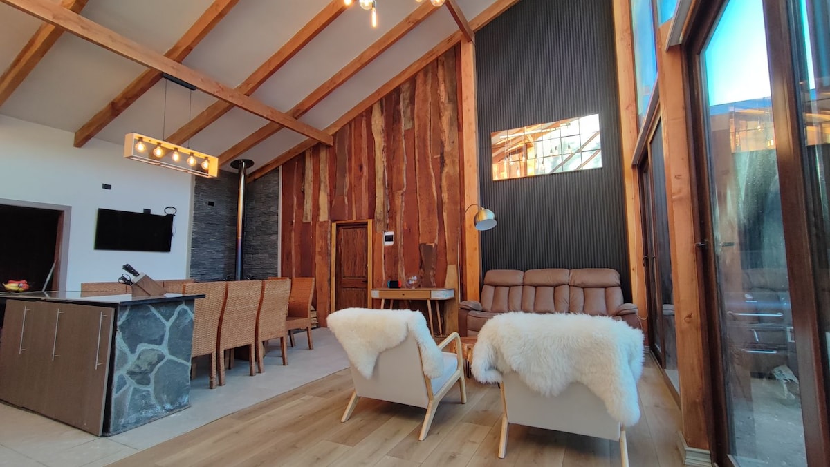 Spektakulär stuga med utsikt över Chilláns snötäckta berg