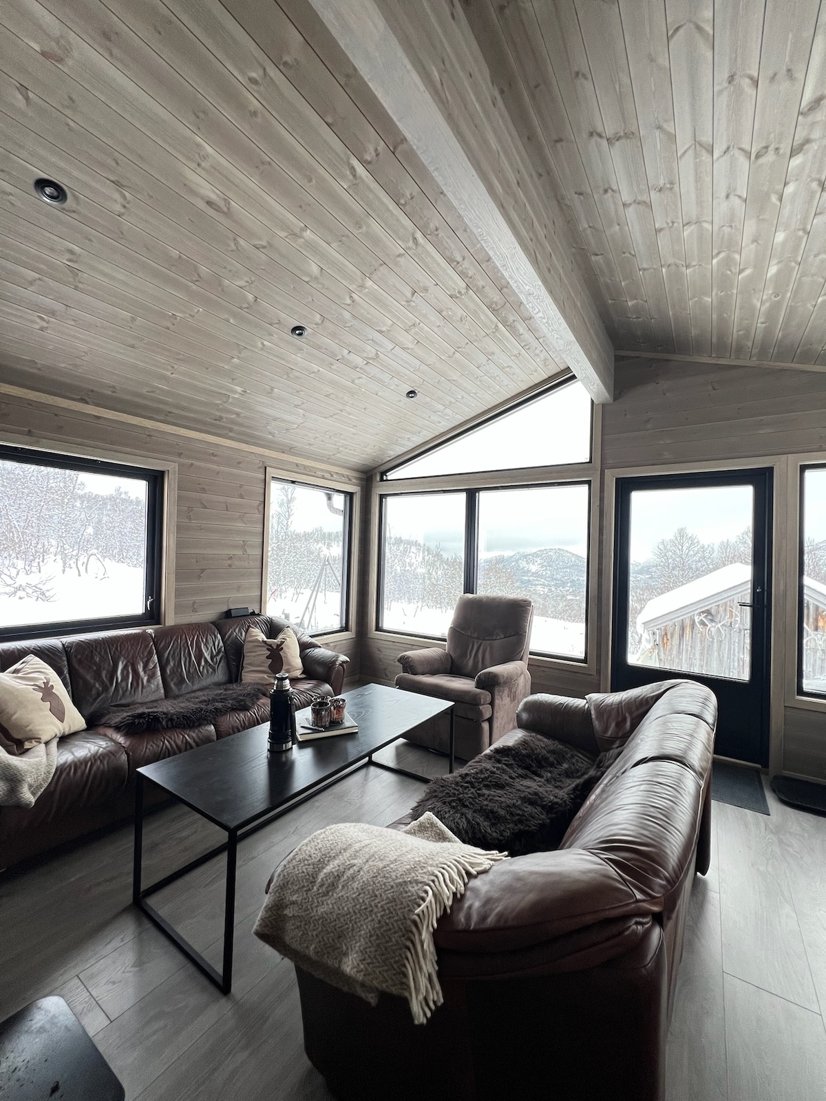 Modern stuga från 2021 med fönster från golv till tak som öppnar stugan till en spektakulär utsikt över berg och dalar. På sommaren betar fåren runt stugan och om du har tur kommer en hare att hoppa runt. På vintern finns det skidåkning in/ut. Stugan har både värmepump och öppen spis som ger god värme och komfort. Det rymliga loftet med TV, Lego och spel är perfekt för barnen. Stugan är perfekt för två familjer. Om ni endast är vuxna rekommenderas högst 8 personer.