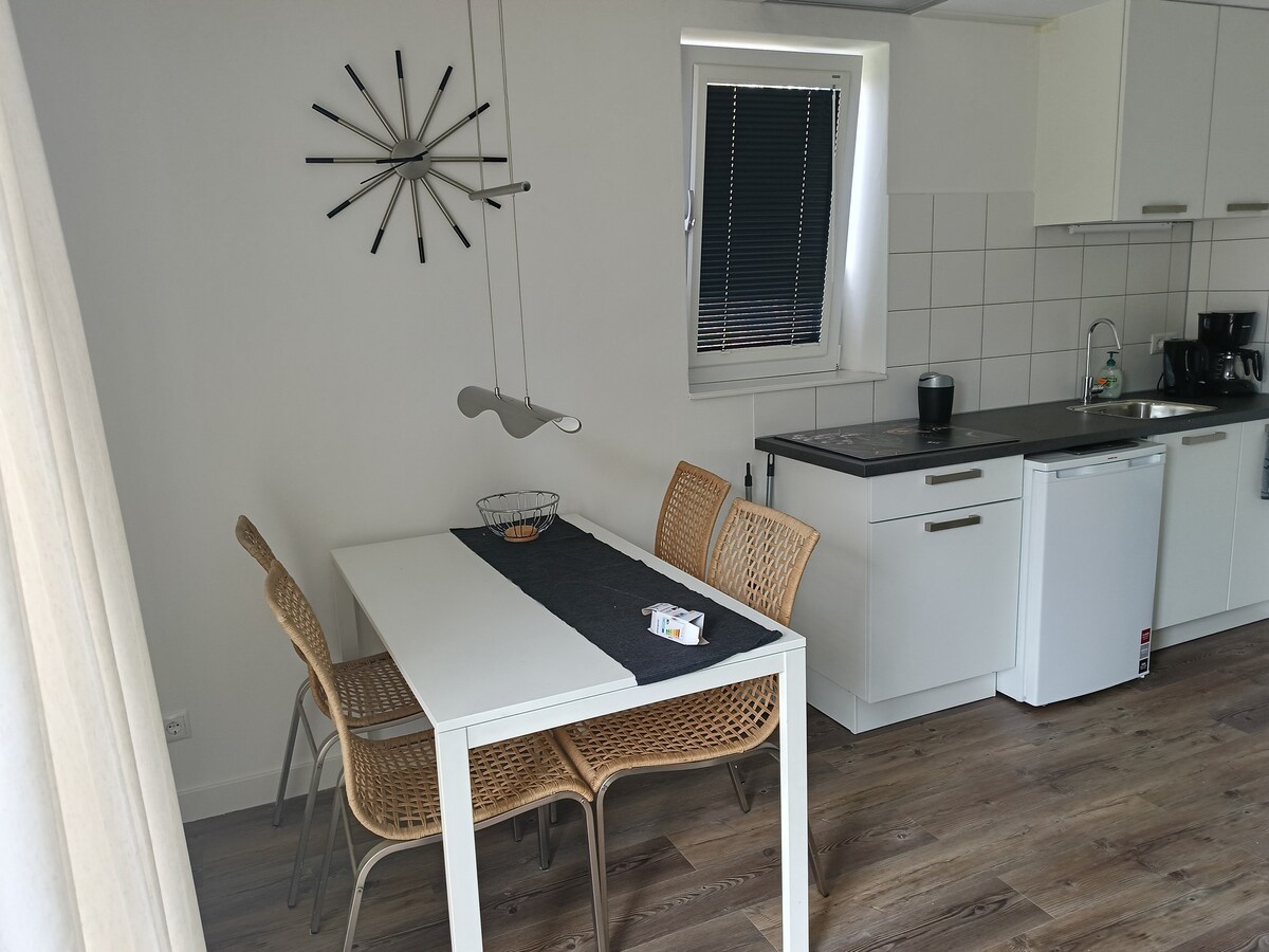 Vårt B&B erbjuder dig en rymlig lägenhet(45 m2), låsbar, på 1: a våningen med egen ingång. Detta gör kontaktlösa vistelser möjliga. Kök med 2-brännare spishäll, ugn, mikro, kylskåp, kaffebryggare och varmvattenberedare. Genom landningen går du in i ditt eget badrum med handfat, dusch och toalett. Den privata ingången är på bottenvåningen. Om du kommer med 3 eller 4 personer, finns ett andra vardagsrum/sovplats tillgängligt i lägenheten (25 m2 extra) Husdjur tillåtna endast efter samråd.