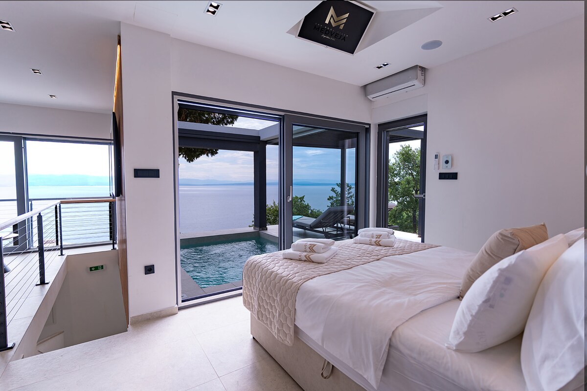 Upptäck paradiset på One Bedroom Sky Pool Villa i Medveja, Kroatien! Denna nybyggda lyxvilla har en uppvärmd pool med hisnande havsutsikt. Njut av en bubbelpool, bastu och grillning utomhus på den stora terrassen. Inomhus kan du njuta av ett fullt möblerat kök, mysigt vardagsrum med en 65-tums HDTV och ett elegant sovrum med direkt tillgång till poolområdet med en terrass. Varje ögonblick här lovar lugn och oförglömliga minnen. Boka nu för den ultimata tillflyktsorten!
