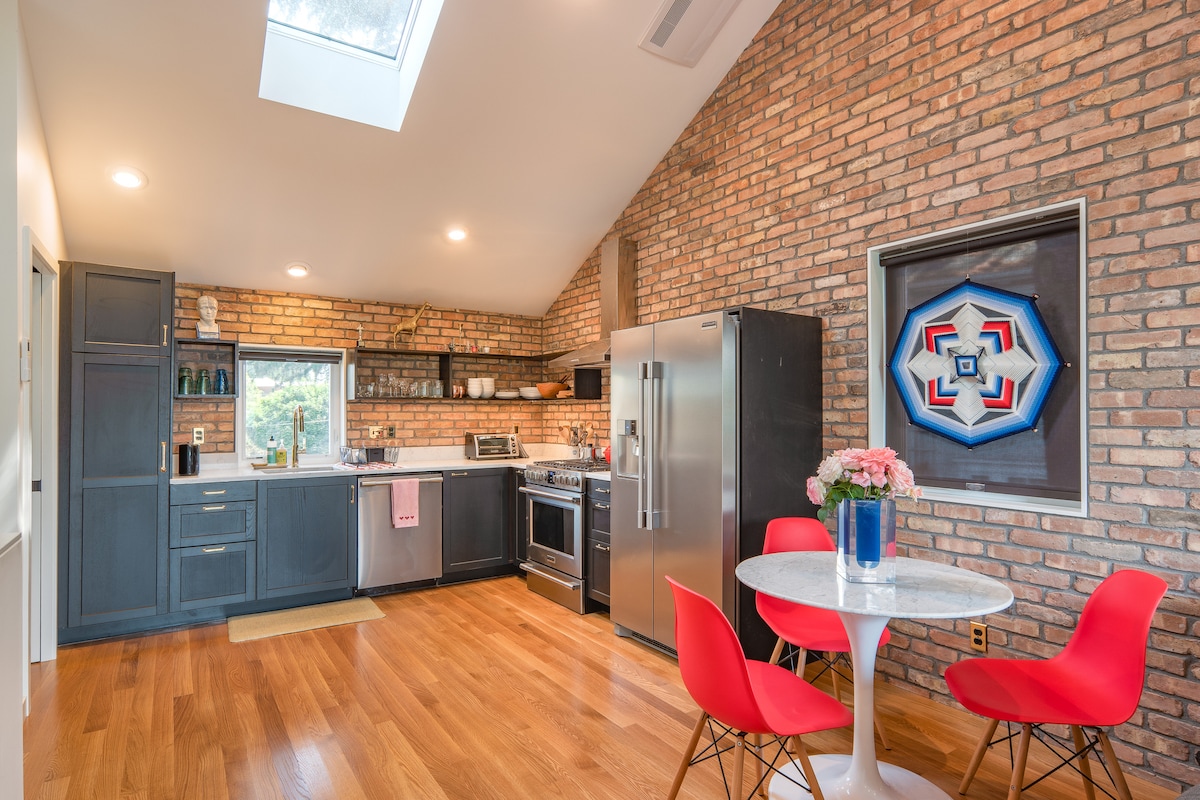 En vårdande plats med rikligt ljus, utsikt över trädgården och tillgång till den bästa Portland-maten. "Det bästa Airbnb jag någonsin bott på!" – frekvent gästkommentar. - American Institute of Architects Award till designer Webster Wilson - Exklusiva bekvämligheter och europeiska armaturer - Lugn NoPo grannskap trädkantad gata, minuter från centrum - Fullt utrustat kök med färskt lokalt kaffe - Mat inomhus och utomhus - Se bildtexter för mer information - Utbildade tjänstedjur välkomna; inga husdjur eller ESA:er
