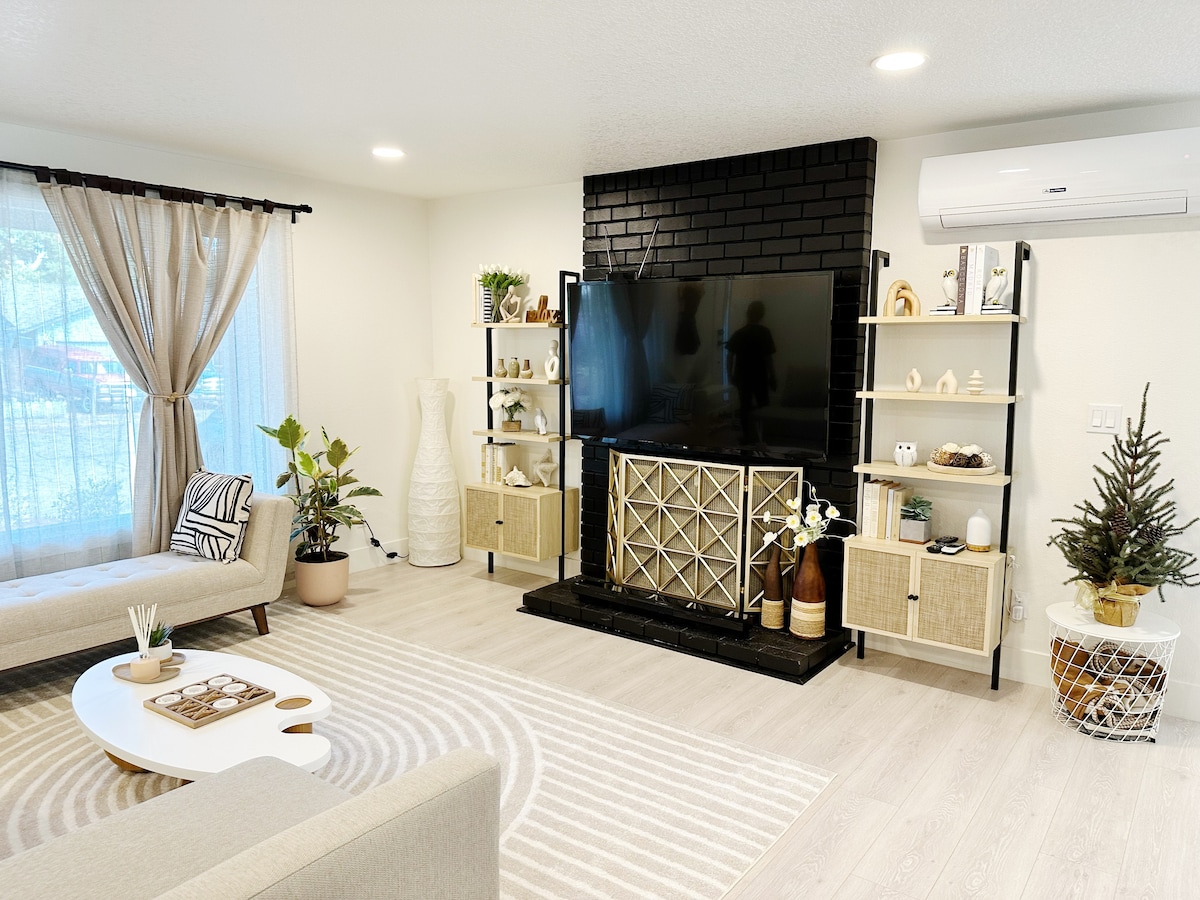 Modern chic home in a quiet neighborhood. Enjoy a relaxing stay at this lovely family & kids friendly home located near Heartwood Park. Beautifully renovated 3 beds & 2 bath with fully equipped kitchen. Modern, comfortable, and clean with all the amenities you need to make your vacation or business trip a success. Private driveway parking and free street parking.