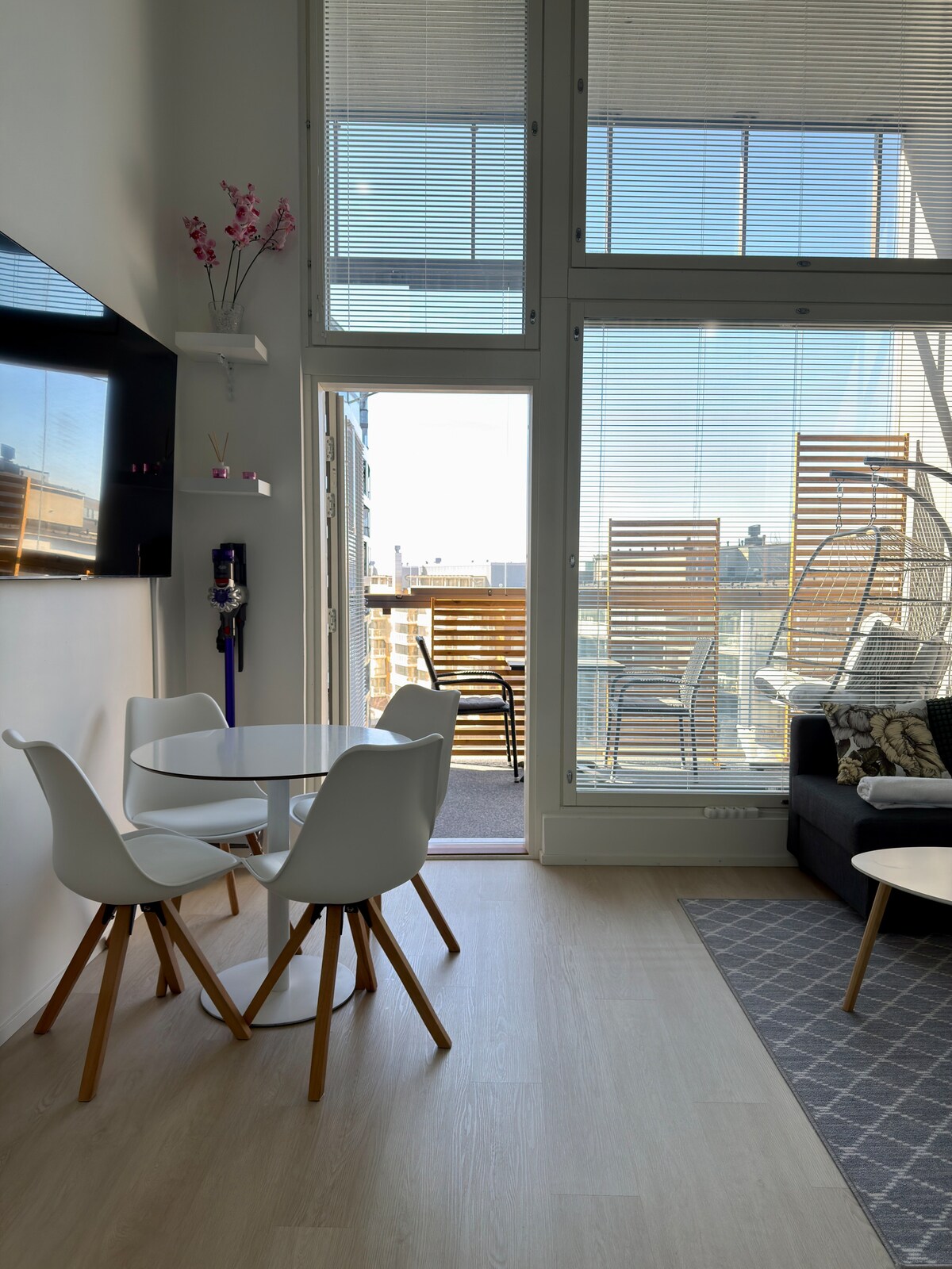 Snygg inredning, en stor glasad balkong och flexibla tider: alltid tidig incheckning (12:00) och sen utcheckning (18:00). Bra läge i hjärtat av Dickursby, nära flygplatsen. 10 minuters promenad till tågstationen, med direkt tillgång till flygplatsen (10 minuter) eller Helsingfors centrum (15 minuter). Alla långdistanståg stannar också i Dickursby. Stora livsmedelsbutiker (Prisma, K-Supermarket / 200 m / öppet 06:00–00:00) och massor av restauranger i närheten. En uppvärmd parkeringsplats i garaget är tillgänglig mot en extra avgift.