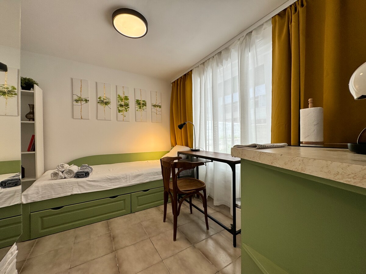 Mysig smart lägenhet i hjärtat av Varna! 🌊Havet ligger 7 minuters promenad bort! 🏪finns apotek, 24-timmars butik i huset ✅närliggande parkering, medicinskt universitet 👌🏼nära marknaden Lägenheten har alla bekvämligheter för en bekväm vistelse : ✅ dusch ✅kaffemaskin ✅te-kettle ✅strykjärn ✅en strykbräda ✅höghastighetsinternet ✅egen ingång från gatan till lägenheten( källare) Priset inkluderar inga elräkningar och internet från oktober till maj inklusive.
