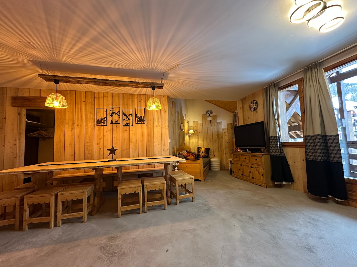 ❄️ Välkommen till Chalet B – Din mysiga alpina tillflyktsort i Vars 140 m² ren komfort i sten och återvunnet trä, översvämmad med ljus genom stora fönster — och fantastisk utsikt över Eyssina åsarna och Écrins glaciären. Redo för vinter- eller sommarsemester ... och till och med en magisk helg under lågsäsong.