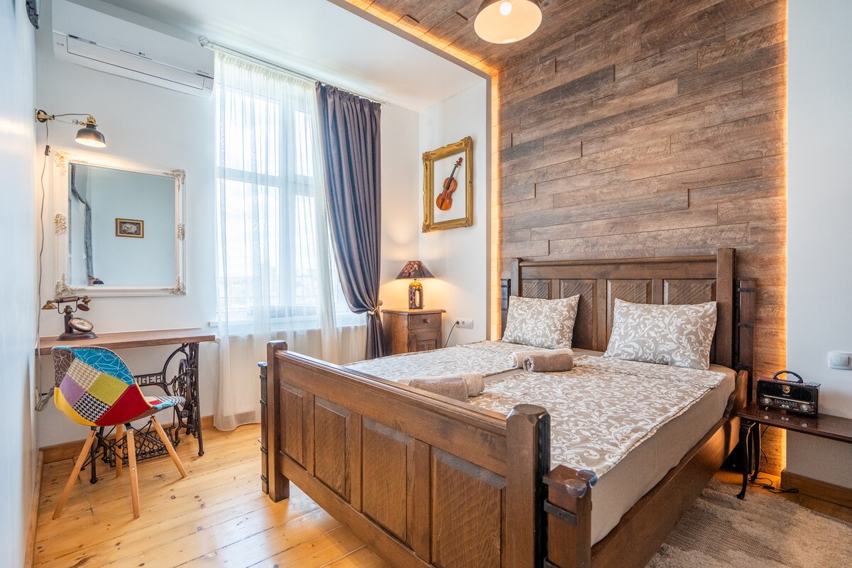 Kliv in i en mysig och vackert designad 1-rumslägenhet, perfekt belägen i hjärtat av Veliko Tarnovos gamla stad. Precis över Samovodska Charshia och några minuters promenad till Tsarevets fästning, kommer du att vara omgiven av historia och lokal charm. Detta nyrenoverade utrymme blandar boutique-stil med konstnärlig stil. Njut av den fantastiska utsikten, njut av lugna morgnar med en kaffe. Perfekt för par, ensamma resenärer och alla som längtar efter en minnesvärd vistelse i den mest förtrollande delen av staden