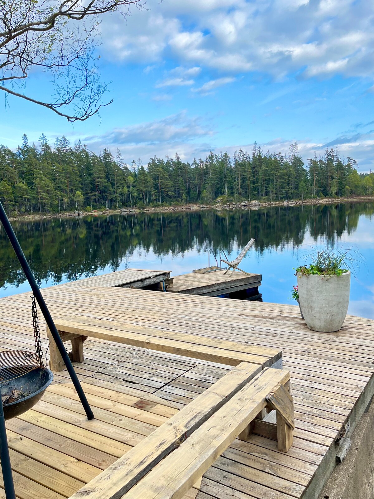 The accommodation offers a unique experience of relaxation by the lakeside, featuring a private sauna, hot tub, and a tranquil relaxation area right by the water with its own jetty. Just a few steps from the sauna, you can take a refreshing dip in the clear lake and then unwind in the warm jacuzzi. Simsjön is a scenic and peaceful spot, perfect for escaping everyday stress and spending quality time together. You can borrow your own boat to explore the lake and enjoy fishing 🎣🌿