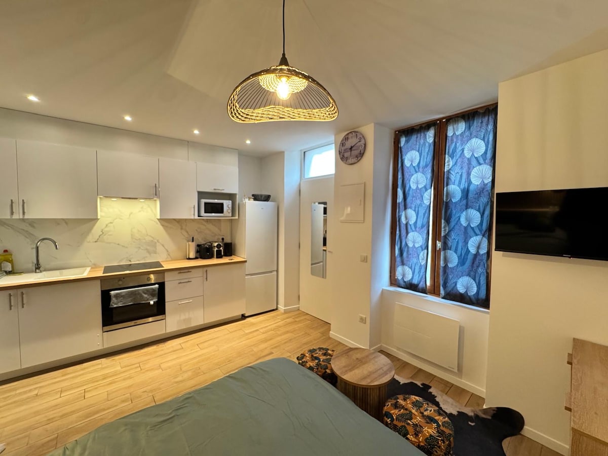 Välkommen till denna mysiga studio i Melun,perfekt för en lugn tillflyktsort eller längre vistelse. Denna ljusa och moderna studio erbjuder alla bekvämligheter du behöver för att känna dig som hemma från det ögonblick du anländer. Den ligger på baksidan av ett hus under en terrass. Bekvämt vardagsrum, utrustat kök, modernt badrum, trädgård, wifi-åtkomst och parkering. Beläget i ett lugnt område i Melun, ligger denna studio några minuters promenad från butiker, restauranger och kollektivtrafik.