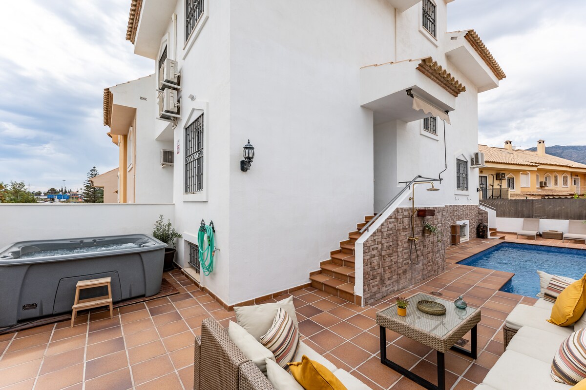Mycket mysigt och rymligt hus. Mycket bra läge, en kilometer från stranden och centrum av Torremolinos. Golfbanan i El Parador ligger också mycket nära. Det finns två stora stormarknader (Aldi och Lidl) 500 meter från huset och flygplatsen ligger enbart 5 kilometer bort. Stort fullt utrustat kök. Vardagsrummet är mycket bekvämt och har wifi och Netflix. Det har en spektakulär trädgård med mysig pool, terrass och grill. Huset har en fruktträdgård med fruktträd och grönsaker.