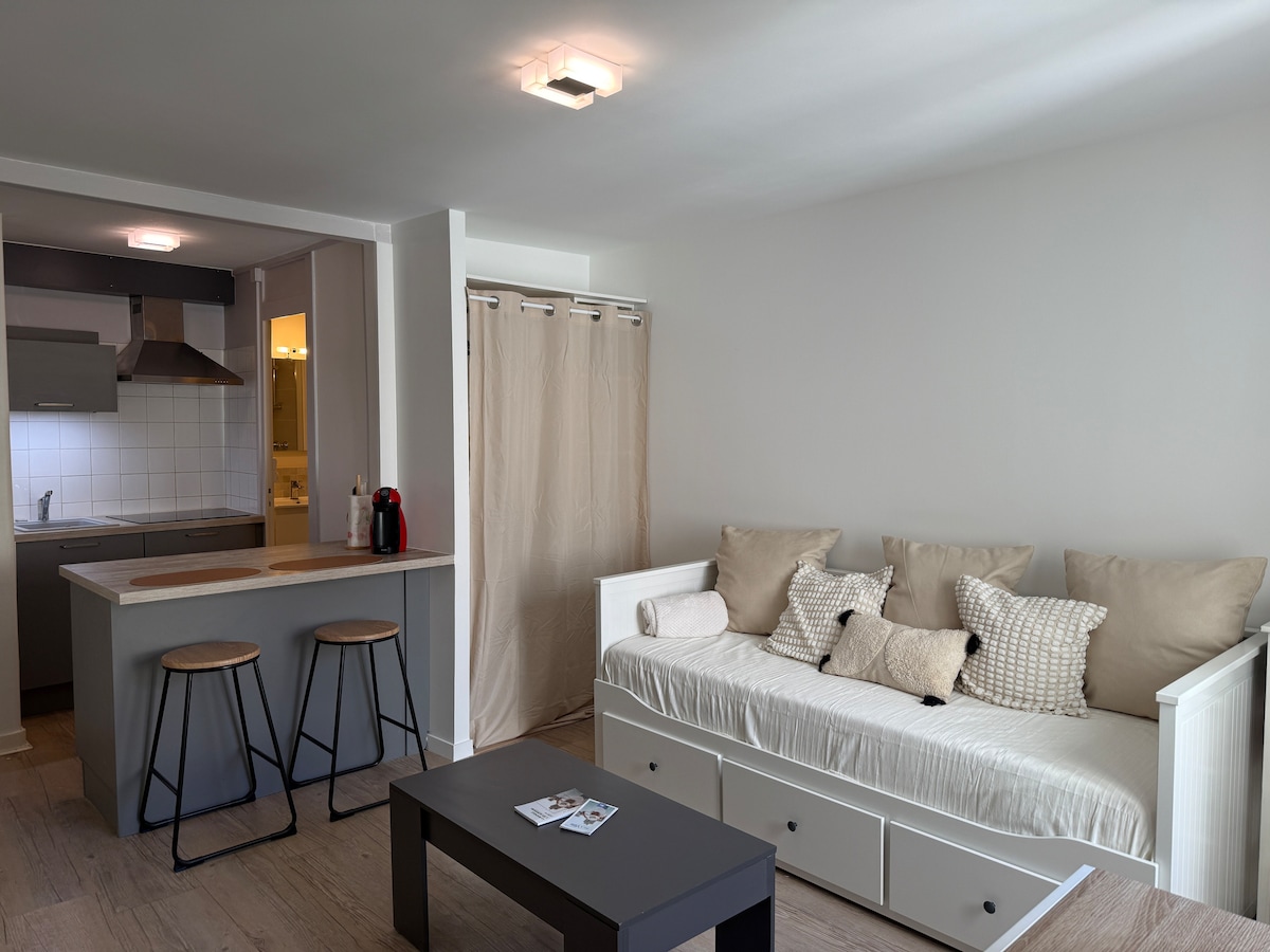 50 m² lägenhet på 3:e våningen (ingen hiss), med ett vardagsrum/matrum, ett fullt utrustat kök, ett sovrum med en 160 cm säng, ett badrum och en separat toalett. Inbäddat i ett lugnt område i Angoulêmes historiska centrum, nära alla bekvämligheter och restauranger. Denna lägenhet är den perfekta utgångspunkten för att utforska staden till fots och njuta av dess många evenemang - perfekt för en sann Angoulême-upplevelse!