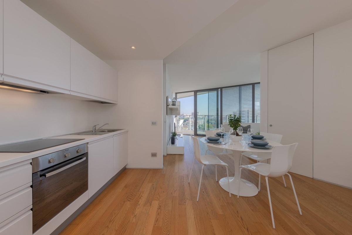Fantastisk lägenhet med moderna linjer och fina detaljer på fjärde våningen i det prestigefyllda Torre Aquileia. Den har ett stort vardagsrum (med möjlighet till bäddsoffa), 1 sovrum med dubbelsäng, 1 sovrum med 2 våningssängar, 1 badrum, terrass där du kan äta lunch, middag eller sola med panoramautsikt. En parkeringsplats i ett privat garage (omöjligt att hitta i Jesolo), en gemensam pool och en plats på stranden nära den berömda Capannina ingår.