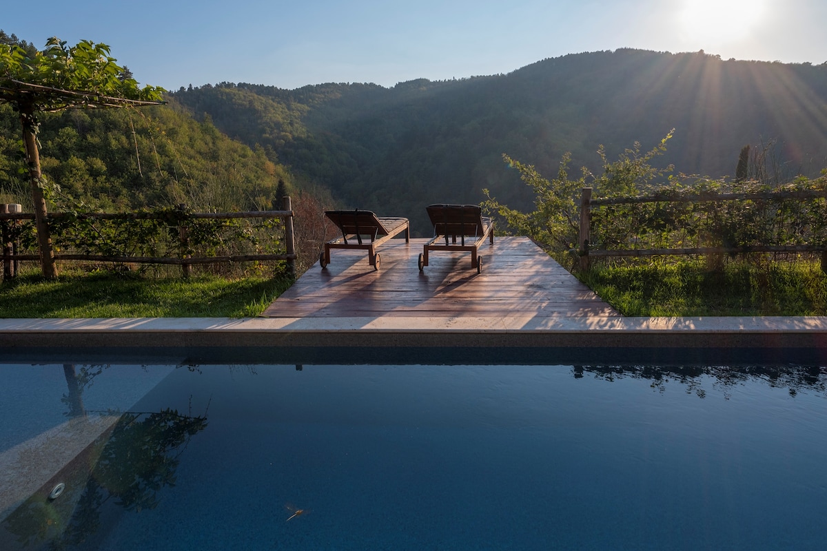 4,88 av 5 i genomsnittligt betyg, 25 omdömenToscana kulle bondgård med pool och trädhus