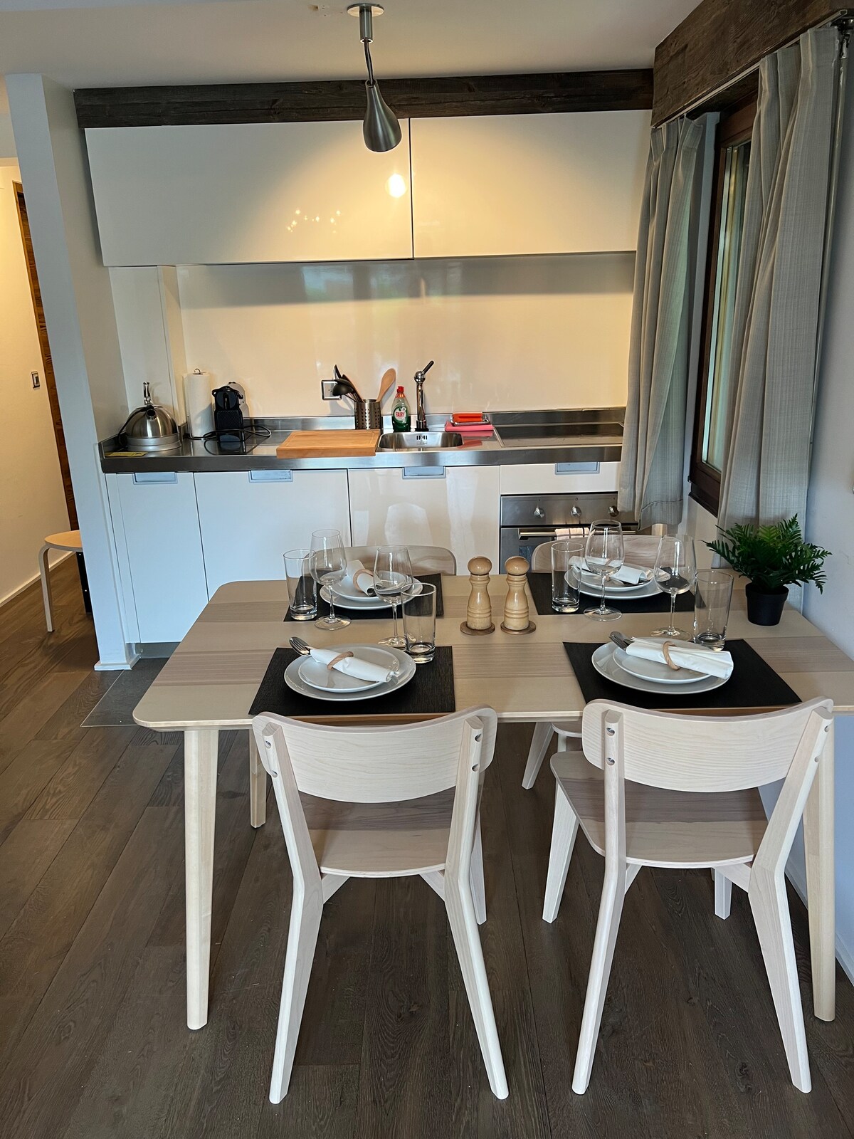 Mitt boende ligger nära stormarknaderna COOP och Migros, sportcentret med skridskobana, pool, tennis, restauranger och sportbutiker, 10 minuters promenad från linbanan. Du kommer att uppskatta läget, utsikten, komforten, det moderna och utrustade köket, ljuset, solen, lugnet samtidigt som det är väl centrerat. Det är perfekt för två personer eller en familj. Flexibel ankomst- och avresetid om lägenhetens beläggning tillåter det, annars se vanliga villkor