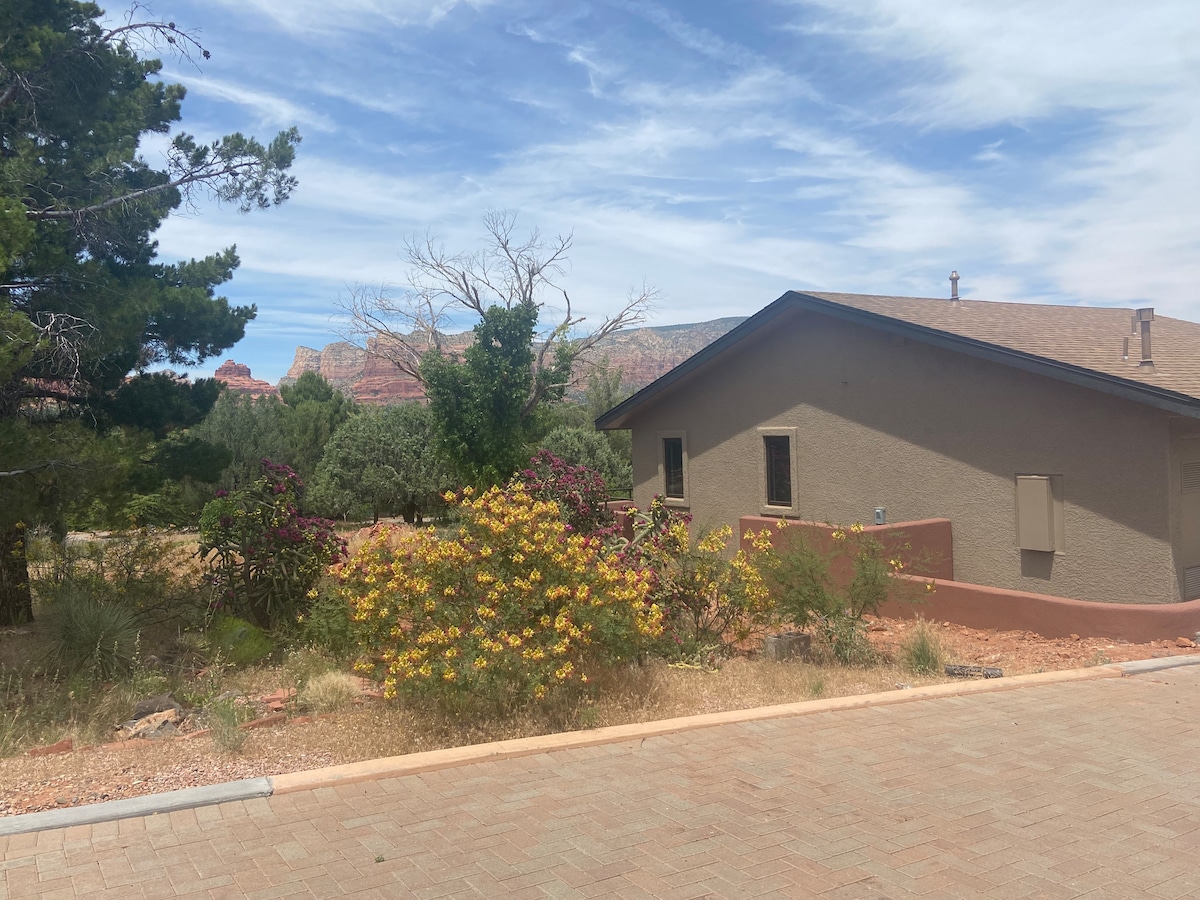 Njut av majestätisk utsikt över berömda Sedona Red Rocks i lyxen av din egen privata villa. Steg från ikoniska Chapel of the Holy Cross, populära vandringsleder. Huset har modern estetik från mitten av århundradet, 1 KING size, 1 bäddsoffa med 2 badrum, 2 rymliga vardagsrum, kök, kontor, matplats utomhus med grill. Efter en dag i öknen, bara kort avstånd, bege dig till Downtown Sedona, fullföljer otroliga konstgallerier och utforska lokala restauranger ! TPT# 21426328/ 1 800 kvadratfot.