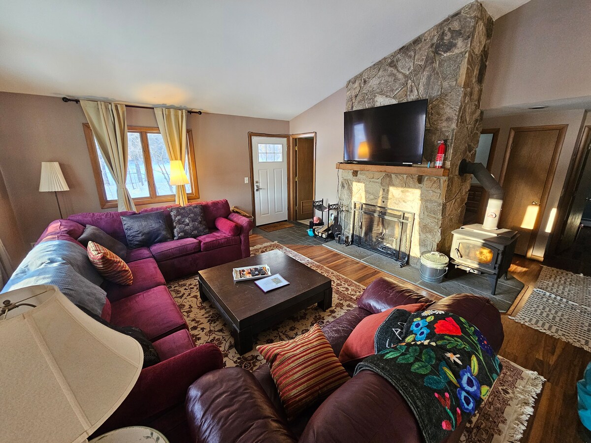 Stuga-7 min till Ski Stratton-Woodstove-View-DogOK