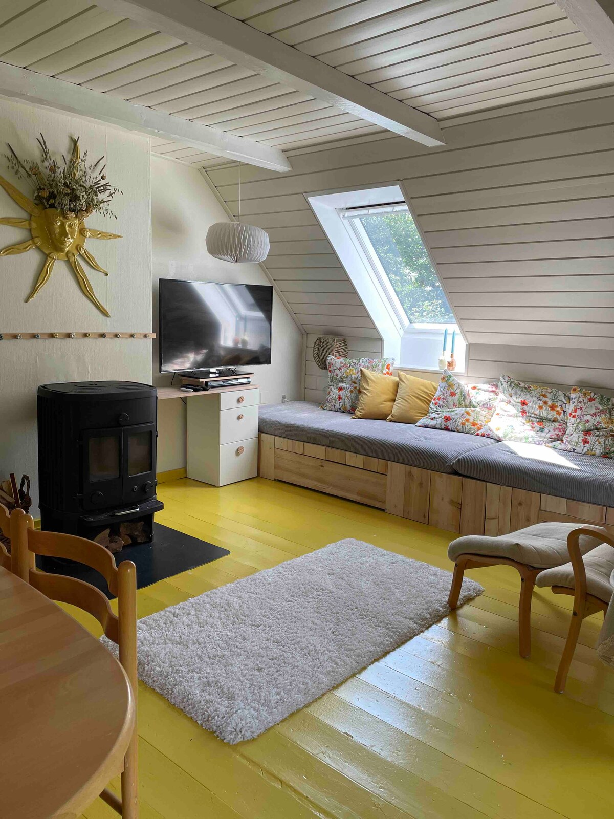 Oplev hyggen, freden, og naturen i det gamle pakhus ved den gamle jernbanestation i nærheden af nationalpark Thy. Boligen ligger seperat fra huset med egen indgang, i boligen er der alt hvad du behøver. Der er sengetøj og håndklæder til 2 personer, er i flere kan der bestilles ekstra, skriv blot dette i henvendelse. I er velkomne til at benytte udearealerne og bålpladsen samt at kigge rundt, der er høns og kælne katte på matriklen. Vi er også selv rundt omkring i haven.