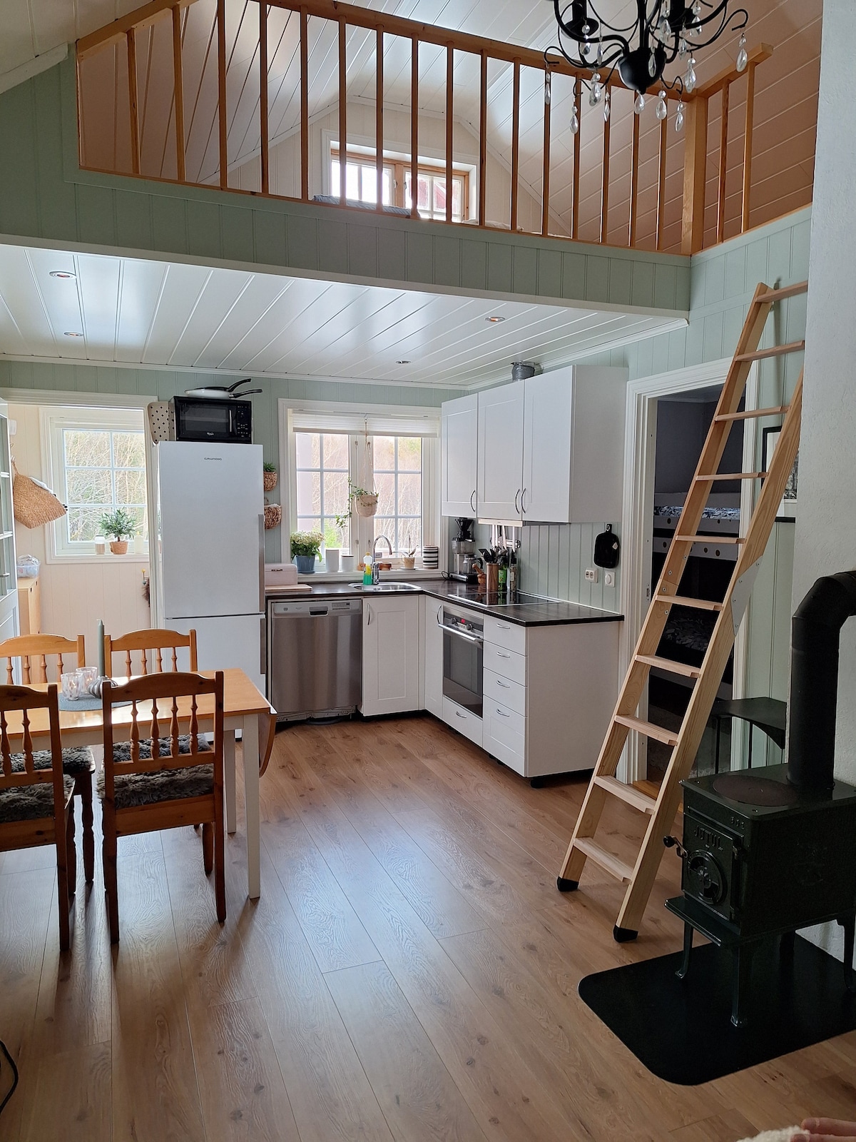 Mysig lägenhet med utsikt över fjord och berg