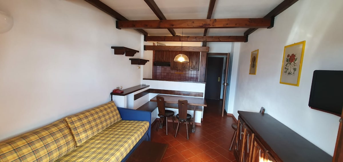 Med pool. Lägenheten ligger i den olympiska byn, 50 meter från skidbackarna. Perfekt för dig som älskar skidåkning och bergsliv, golf och promenader. Det rymmer högst 4 personer (ett sovrum med dubbelsäng och en bäddsoffa). Lägenheten har ett utrustat pentry, ett sovrum med TV, ett badrum med dusch och hårtork, ett vardagsrum med TV, en 2-sits bäddsoffa och ett matbord. Naturskön balkong med solstolar..