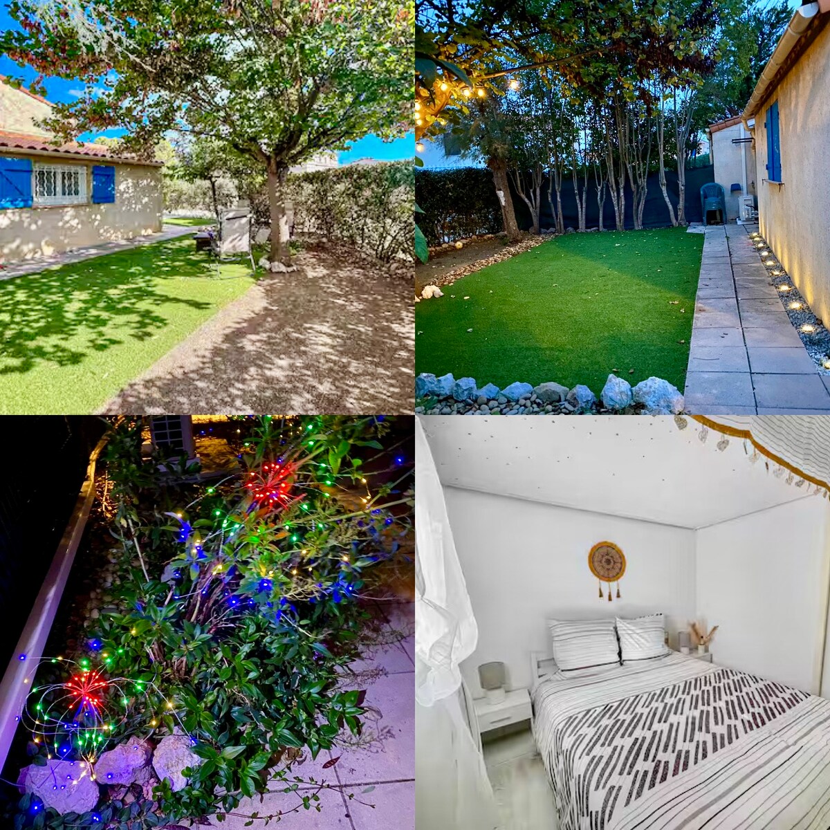 Maison familiale de plain-pied composée de 4 chambres, 2 salles de bains, d'une terrasse couverte donnant sur une terrasse extérieure avec une petite piscine 3x3, un terrain de pétanque et un joli jardin où vous pourrez profiter d'une magnifique vue sur le massif de la Gardiole. La Villa La Douce Gardiole est l'endroit parfait pour une réunion de famille (parfait pour 3 couples et 4 enfants). Le quartier est très calme et ne convient donc pas aux groupes bruyants. FÊTES INTERDITES !