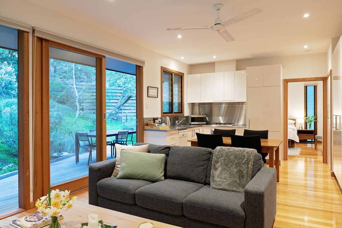 Ett privat lugnt utrymme som ligger längst ner i vår vackra trädgård mitt emot Hindmarsh River promenad som ofta besöks av fågelskådare. Perfekt för par som uppskattar naturens magi, med grodor som kväker utanför dörren och ett överflöd av fågelliv att njuta av. Bara en kort 5 minuters bilresa till Esplanade of Victor Harbor där du kan hoppa på det historiska Cockle Train till Goolwa eller åka på hästdragna spårvagnen till hisnande Granite Island.
