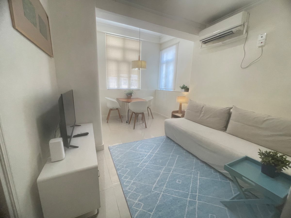 Modern och nyinredd studiolägenhet i trendiga Kennedy Town – bara 17 minuter från Central, 5 minuters promenad till MTR, 1 minut till spårvagnen. Härligt lugnt bostadsområde med många restauranger, bagerier, caféer och stormarknader i närheten. Stranden ligger bara en kort promenad bort på andra sidan vägen. Du kan njuta av en löpspåret längs Victoria Harbour. Om du är ute efter ett avkopplande och lugnt ställe att bo på är detta rätt ställe! Sängen är en liten dubbelsäng (120 x 183 cm), lämplig för en eller två gäster.