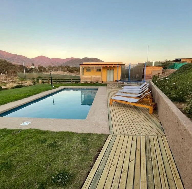 Relaxation spot where the sun will shine from the morning. It's prepared for a group of 12 to 14 people, fully equipped, with beautiful and spacious green areas, a large pool, gym, barbecue area, and clay oven, ping pong table, football, wooden hot tub with firewood heating, 5 bedrooms, 4 bathrooms, Wi-Fi, beautiful and cozy spaces, ideal for families to come and relax and recharge in the Valle del Elqui. Located towards Vicuña, 15 minutes from downtown La Serena.