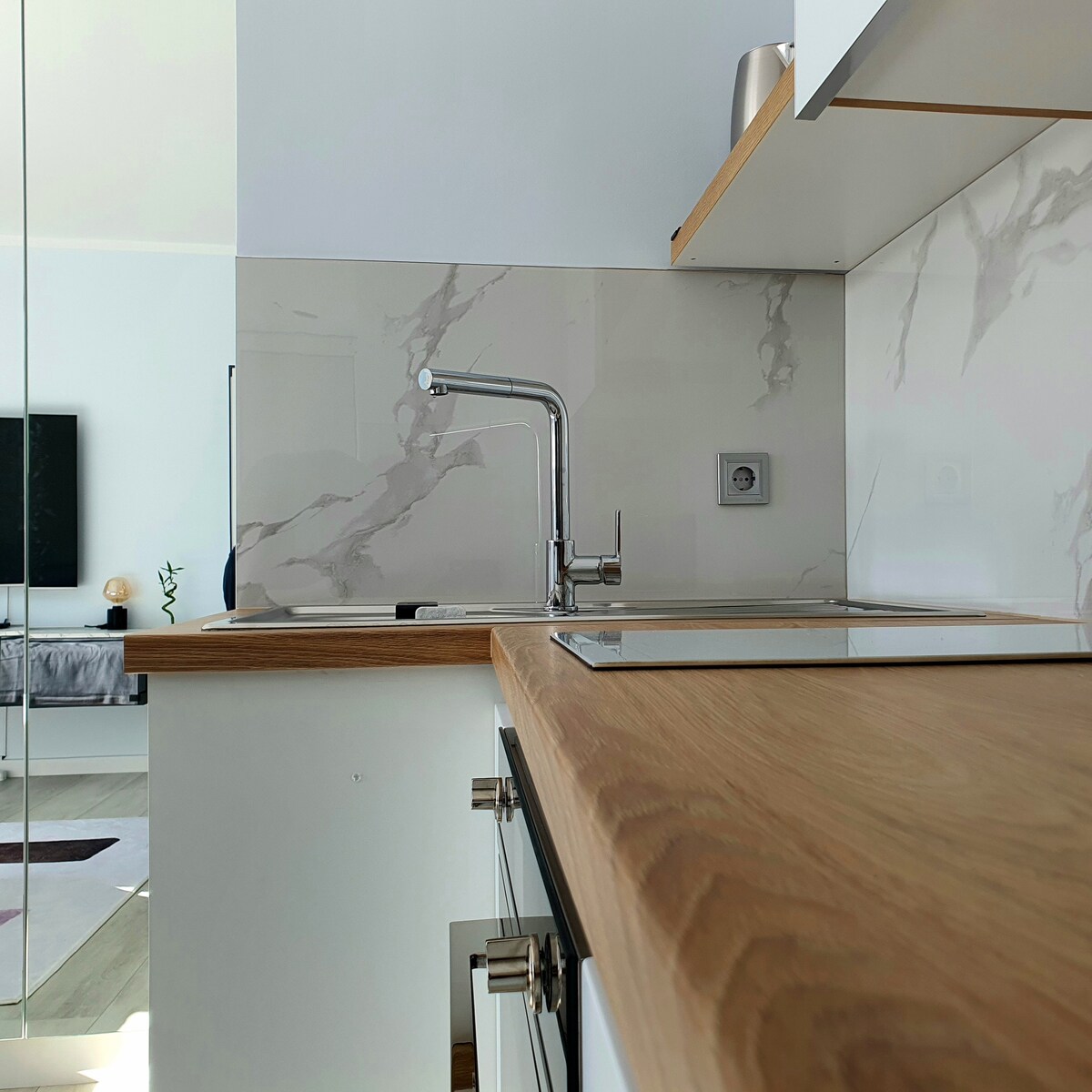 A one-bedroom apartment. The place itself is beautiful, made with passion and with details to keep our guests happy and satisfied with everything they might need. Is a great choice for a cosy and intimate stay! It typically offers a separate bedroom with a King bed and couch along with a living area, kitchen, and bathroom. A nice view of the river and the park. The layout is perfect for couples, solo travellers, or small families. The town centre is on 5-10 minutes woke Pet is not allowed.