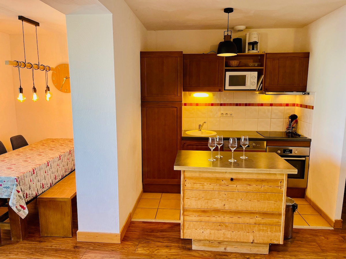 Lägenheten ligger på bottenvåningen på baksidan av bostaden, utsikt över grönska, tillgång till gondolen på 5 minuters promenad. Du kommer att ha: 1 chb (säng 140) och dess eget badrum, en 2: a chb (säng 140), 1 bergshörn (2 våningssängar), 1 badrum, 1 terrass. Wifi, 2 skåp och underjordisk parkeringsplats INGÅR. SAUNA HAMMAM POOL-området är öppet året runt (stängt i november) GRATIS SÄNGKLÄDER för en veckolång vistelse. Perfekt för att koppla av!
