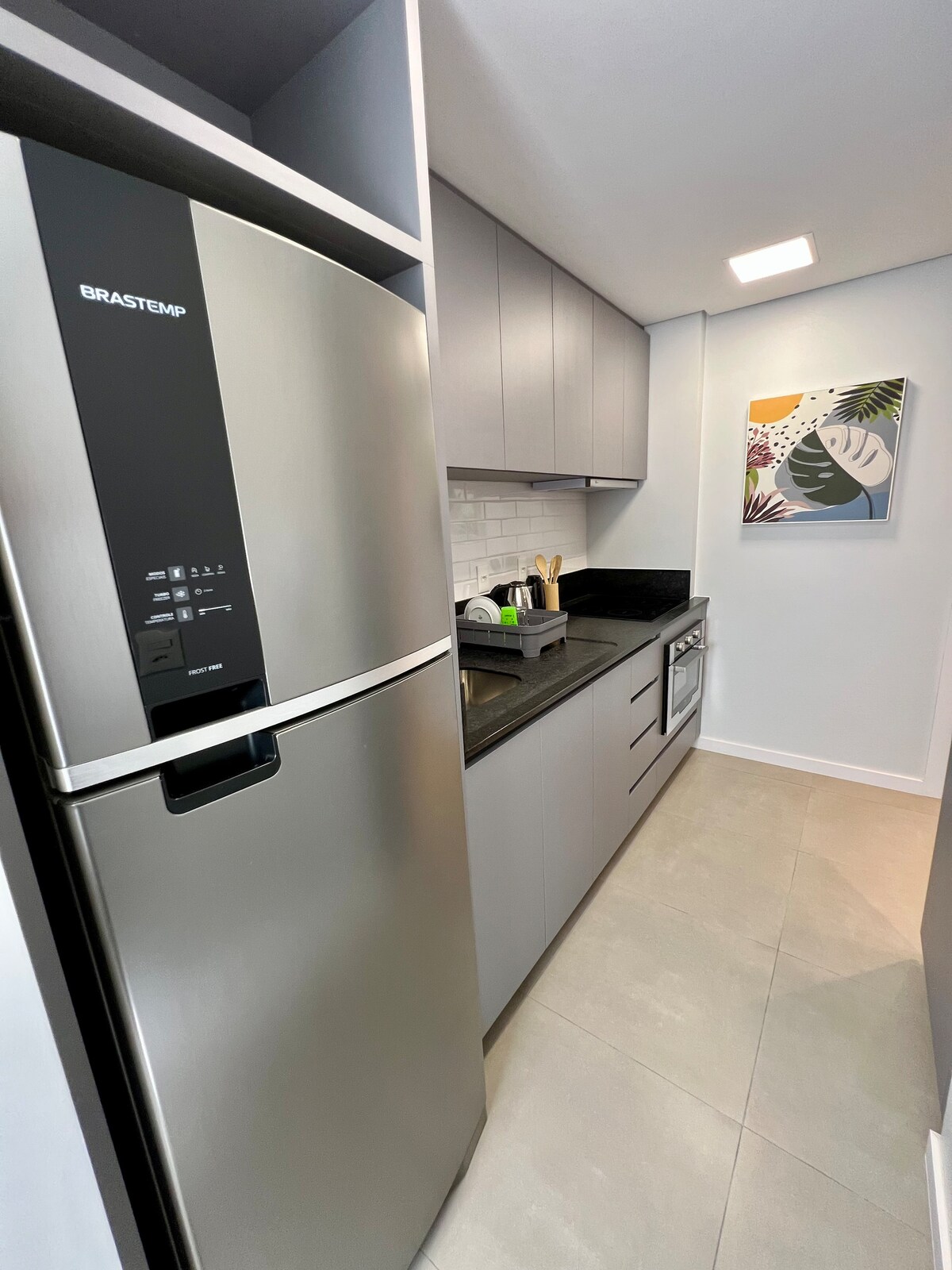 Loftet ligger i Zuhause-byggnaden, en ny byggnad med ett urbant koncept och arkitektur, förberedd för att ta emot människor som värdesätter fint planerade utrymmen. Det har ett gym, takpool med panoramautsikt, tillgång via elektronisk grind och 2 hissar. Det finns butiker på bottenvåningen under kontorstid. Det ligger 300 meter från Vila Germânica, där Oktoberfest och National Beer Festival äger rum, samt stadens mässor och evenemang, och det kommer att vara mycket nära centrum. Du kan promenera om du vill.