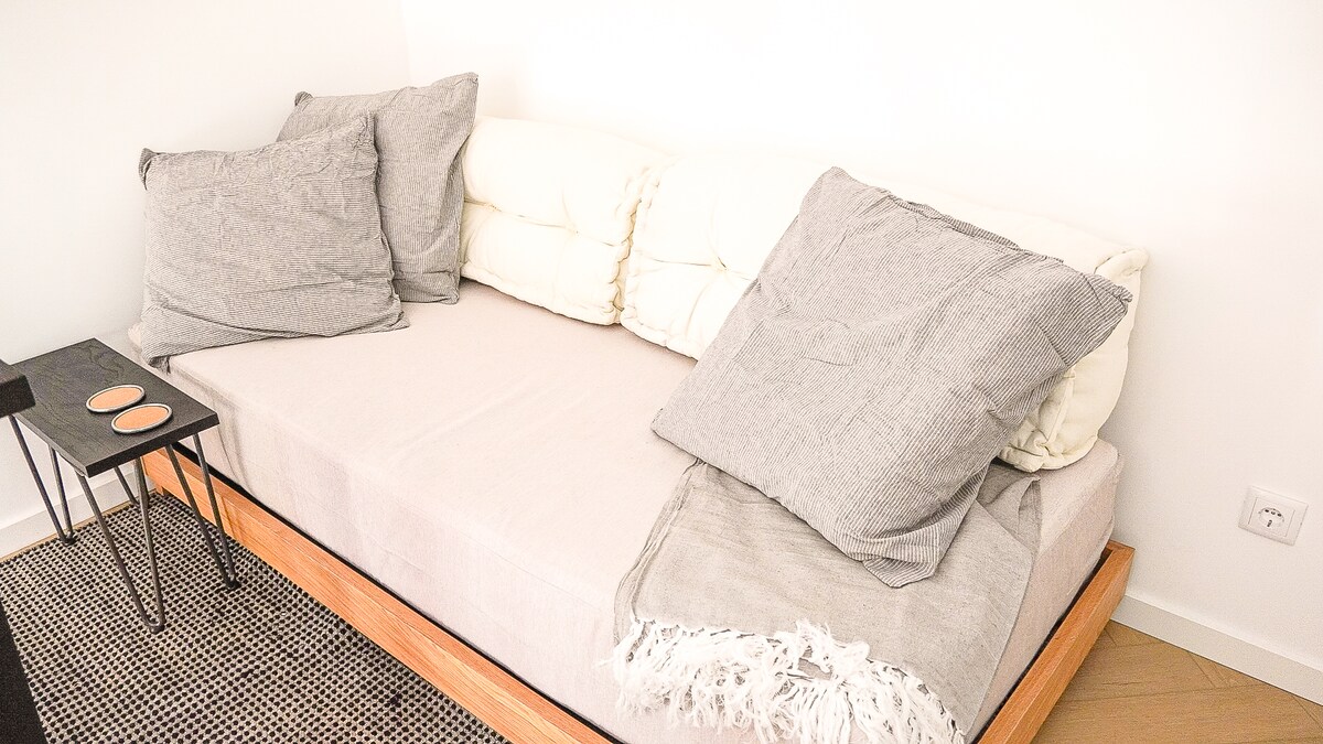 Mycket ljust hus med två sovrum bredvid en naturlig hamn 100 m från stadens centrum. Läget är utmärkt, med en stor terrass med utsikt över den vackra fiskehamnen och det ständiga ljudet av havet, de stora fönstren vetter mot viken. Bredvid lägenheten finns några av de vackraste stränderna, lugna vikar med underbara klippor. Det är en perfekt plats för att njuta av promenader längs Ruta Vicentina. Porto Covo är en vacker och lugn plats på Alentejos kust.