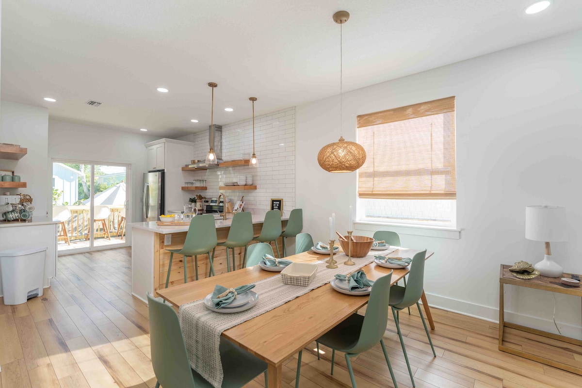 Relax and have fun at this LUXURY beach getaway with high end furnishings and linens. The house has 4 bedrooms including 2 masters w/ king beds, 3.5 bath and a chef’s kitchen! Minutes walk to beautiful and coveted beach (3 blocks) and a 10 minute drive to downtown St. Augustine where you can enjoy many restaurants, coffee shops and local boutiques. Best yet, come back home and relax in your own fully fenced backyard w/PRIVATE HEATED SALTWATER POOL. We promise you won’t want to leave!