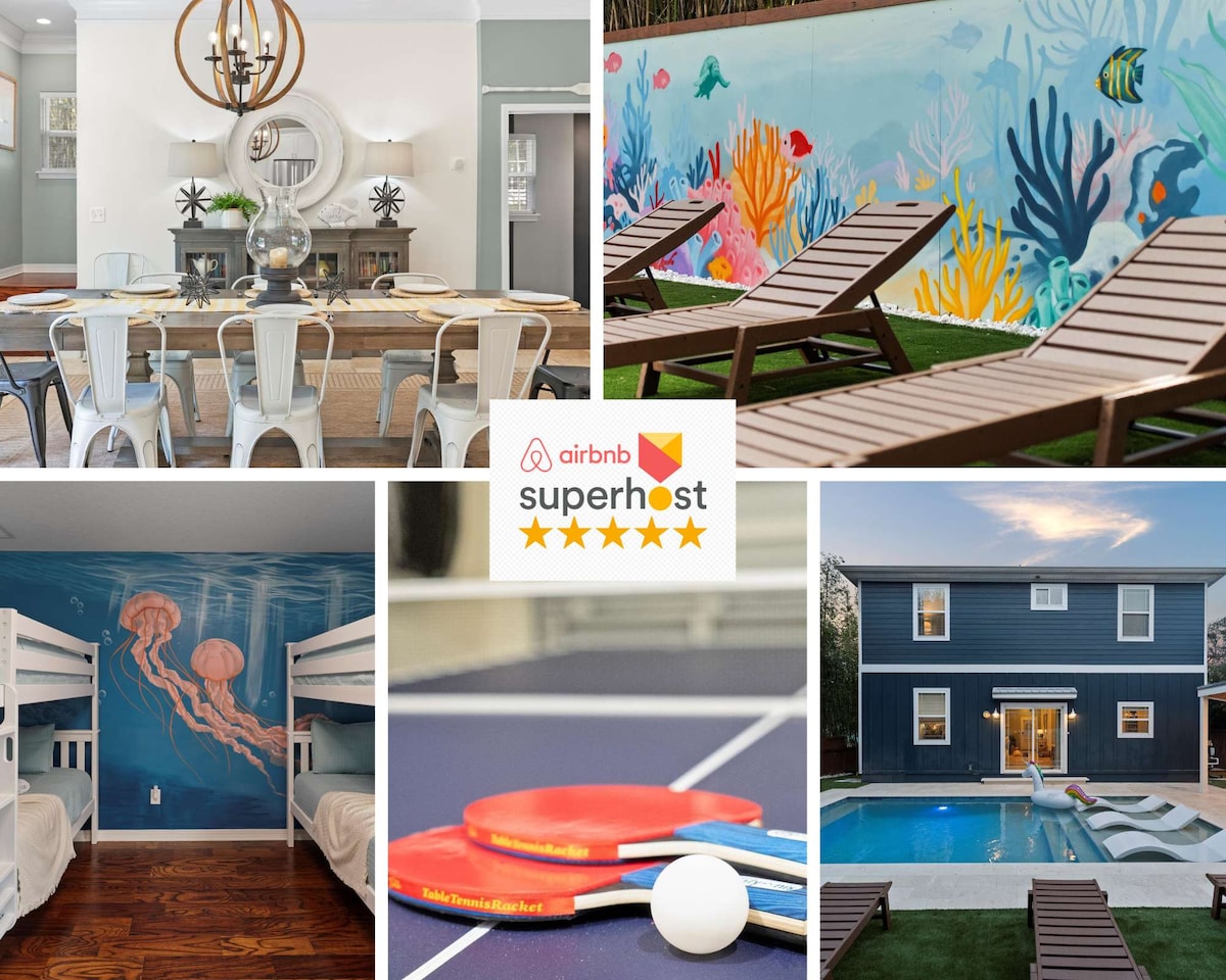 2023 Lux Home 4bd/3.5ba+SaltPool+HotTub+Walk2Beach