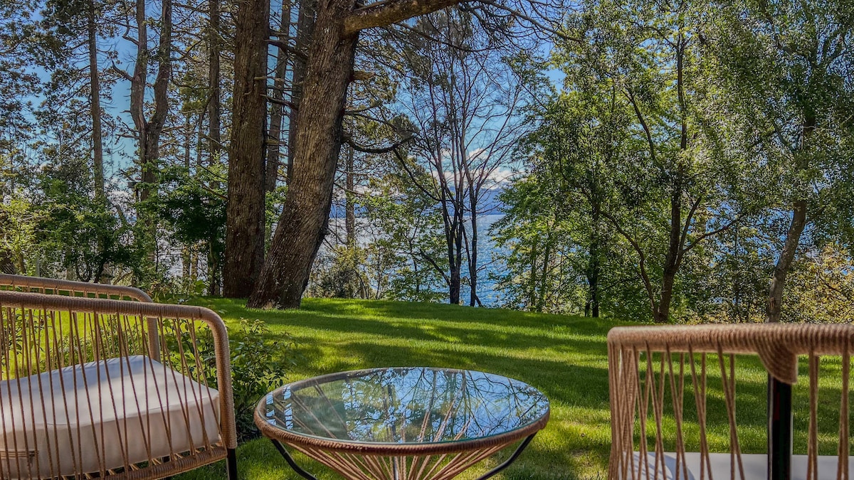 Departamento moniambiente de 50 mts2 con imponente vista sobre el lago y a la Isla Victoria en la zona de Llao Llao. Tiene un pequeño living, cocina completa con horno y microondas, cama king size que dan a un balcón terraza. Baño completo con bañadera Bajada propia a la costa de lago Servicios Wifi Balcón terraza con reposeras Ropa de cama y toallas se cambian c/ 5 días Secador de pelo Estacionamiento privado Exclusivo para parejas No hay desayuno No hay Tv Se cobra limpieza final usd20
