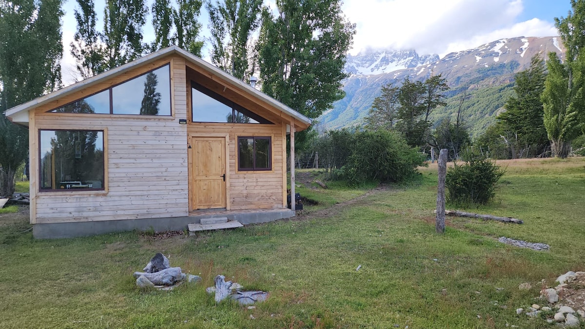 Cabin 500 meters from Villa Cerro Castillo, at the foot of the National Park and steps away from the trekking trail to the Laguna, Rio Ibañez, climbing routes, bike trails, and horseback riding. 1 bedroom on the first floor and another on the second floor, 1 bathroom, living room with integrated small kitchen. Accommodates 2 people (max 4). Breathtaking views of Cerro Castillo with a border along the Estero del Bosque. Ideal for 2 people who want to enjoy nature and outdoor activities.