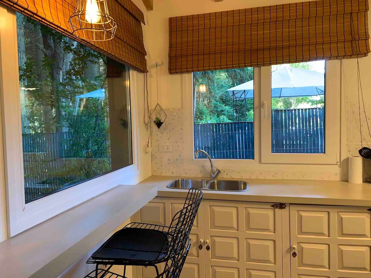 Sommartid inbjuder El Bosque 2 dig att njuta av naturen, den friska luften och lugnet i den patagonska skogen. Omgivet av grönska och beläget i ett lugnt område är det idealiskt för att vila bort från oväsendet. Huset är bekvämt, funktionellt och helt fristående, med ett utrustat kök, ett mysigt vardagsrum och en trädgård där du kan koppla av. Dess läge ger enkel tillgång till sjöar, kullar och centrala Bariloche, vilket gör det möjligt att kombinera vila och promenader i naturen. Perfekt för par. Perfekt för par och familjer.
