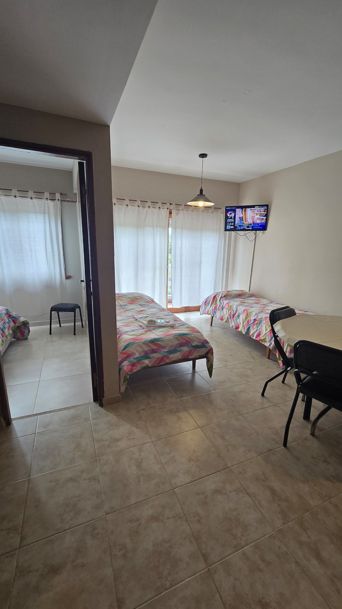 El departamento cuenta con un dormitorio y un sofacama (tipo cama marinera) Nuestros departamentos se encuentran ubicados a 500 metros de la playa y a solo 300 del comienzo del centro de la ciudad. Es una zona muy tranquila y silenciosa, ideal para descansar 🧡 Aceptamos mascotas 🐶 Cuentan con cocina equipada, alarma con monitoreo 24hs , TV, WIFI gratuita, jardín y parrilla. No alquilamos a grupos de jóvenes/adolescentes y no se permite realizar fiestas.