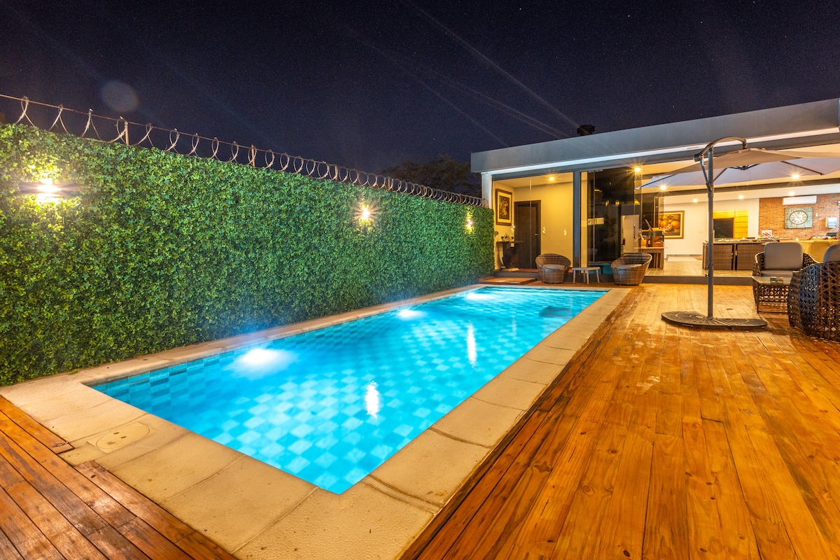 Välkommen till ditt hem hemifrån i Luque/Asuncion, bara några minuter från den internationella flygplatsen och CONMEBOL! Boendet har ett vardagsrum, en soffa och en charmig quincho med en rostfri grill. Njut av saltvattenpoolen, uteplatsen och den lummiga trädgården. Ytterligare funktioner: gymnasium, bastu, tre bekväma fulla sovrum, extra soffa och två moderna badrum. Med gott om inomhusparkering är denna bostad perfekt för familjer eller grupper som söker avskildhet, komfort och bekvämlighet.