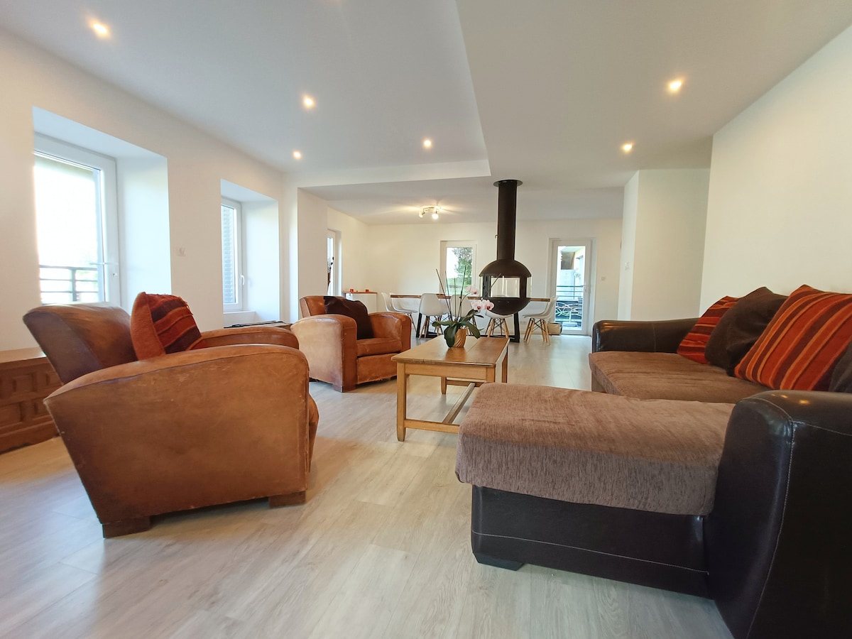 Stort hus på cirka 150 m2 på två våningar som består av bottenvåningen: Ett öppet kök i ett vardagsrum med öppen spis, Stor-TV med Netflix-åtkomst, Ett badrum med badkar, toalett, Ett sovrum, En korridor med en garderob, En garderob med olika vitvaror. På övervåningen kan du njuta av de fyra sovrummen, inklusive: En master suite med dusch, Ett sovrum med en skärm och PlayStation 4, Ett stort badrum med badkar och dusch och toalett.