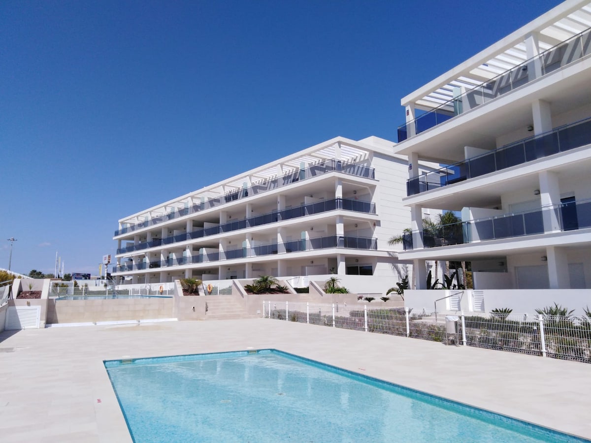 Njut av en unik vistelse i denna exklusiva lägenhet byggd 2025 där ljus, hav och design kombineras för att erbjuda en avkopplande och bekväm upplevelse. Koppla av på terrassen med fantastisk havs- och bergsutsikt, det perfekta stället för frukost i solen och middag vid solnedgången. Sommartid kan du njuta av utomhuspoolen. På vintern kommer poolen på grund av byggnadsarbete att vara stängd i november och december 2026. Säkert, välskött bostadsområde, nära golfbanan och bowlinghallen, och 800 meter från stranden. Internationella TV-kanaler.