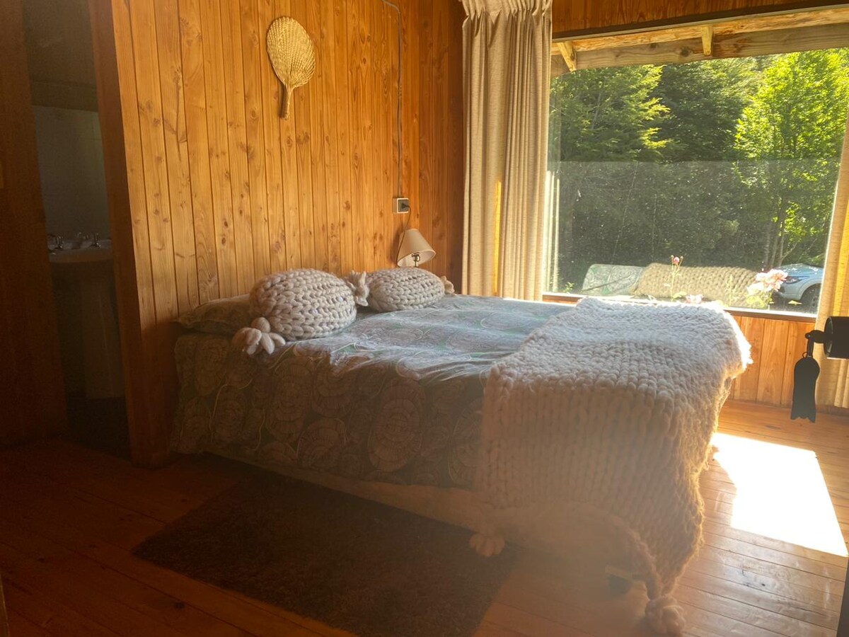 Vi är på väg till vulkanen 1 km från centrum av Pucón och 14 km från skidcentret. Lugn och hemtrevlig miljö, sköts av ägarna. Bort från bullret och ligger mitt i en skog, kan du vila och koppla av. Vi har parkering och privat badrum, en rymlig trädgård med pool, WIFI, uppvärmning, komfort i sängkläder, riklig frukost och alla bekvämligheter för att få dem att känna sig som hemma genom att ge dem personlig uppmärksamhet. Hantering av engelska och spanska.