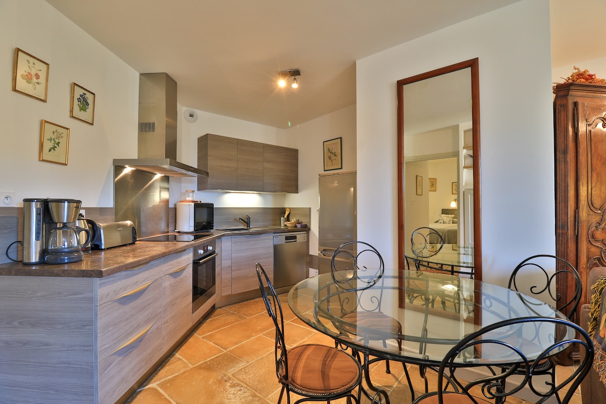 I en gammal bastide halvvägs mellan Medelhavet och Lac de Sainte Croix, ligger en oberoende lägenhet på 60 m² på första våningen. Helt renoverad, den har ett vardagsrum med en salong, kök, matsal, och ett sovrum med badrum. En bäddsoffa i vardagsrummet rymmer totalt 4 personer. Sängkläder och handdukar tillhandahålls. Poolen delas med värden.