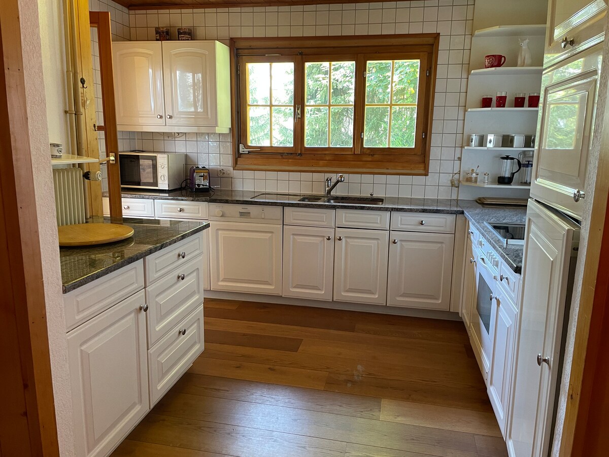 Vacker vindsvåning i en prestigefylld alpstuga nära Gstaad. Spektakulär utsikt över bergen, lugnt läge utan genomfart. 3 rum 2 sovrum med 4 sängar Max 4 personer 5 min med bil till byns centrum, linbana och stormarknad Entré, öppet kök, vardagsrum med öppen spis och matbord, 2 rum med dubbelsängar. 1 badrum med bubbelpool, italiensk dusch/toalett och separat toalett. Tvättmaskin och torktumlare. Mycket stor balkong i söderläge.