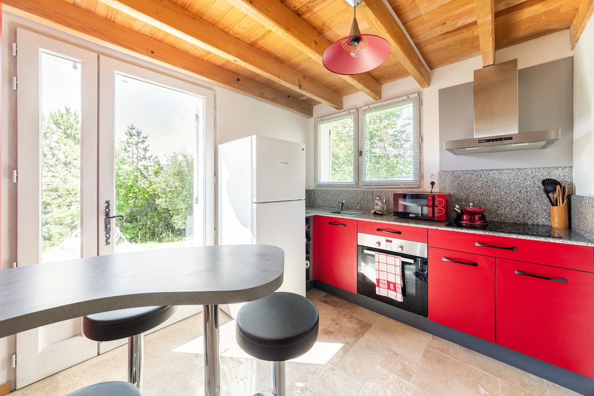 Detta boende ligger i ett trähus med separat ingång, byggt i modern stil. Detta är en unik möjlighet att tillbringa tid i ett äkta finskt hus. Huset ligger i ett lugnt och skogsbevuxet område, 3 minuter med bil från byns centrum, som dateras tillbaka till 1200-talet och rankas som en av de vackraste byarna i Frankrike. Det är möjligt att boka frukost eller middag med värdinnan (professionell kock).